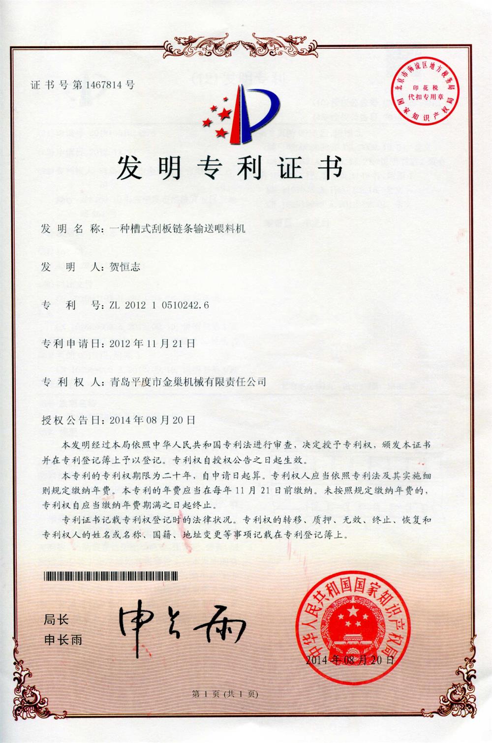 五、綜上,針對鏈板喂料機存在的缺陷,我公司深入市場走訪客戶,疏理總結(jié),找出問題,瞄準方向,通過技術(shù)創(chuàng)新,研究出全新的“雞用刮板鏈條輸送喂料機”。